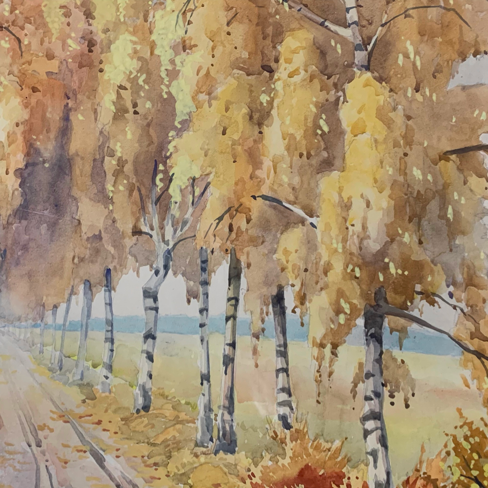 An early 20th century Watercolor by Wilhelm Busse-Dolau b.1886. Signed lower right and titled “Ressener Birkenweg” lower left.