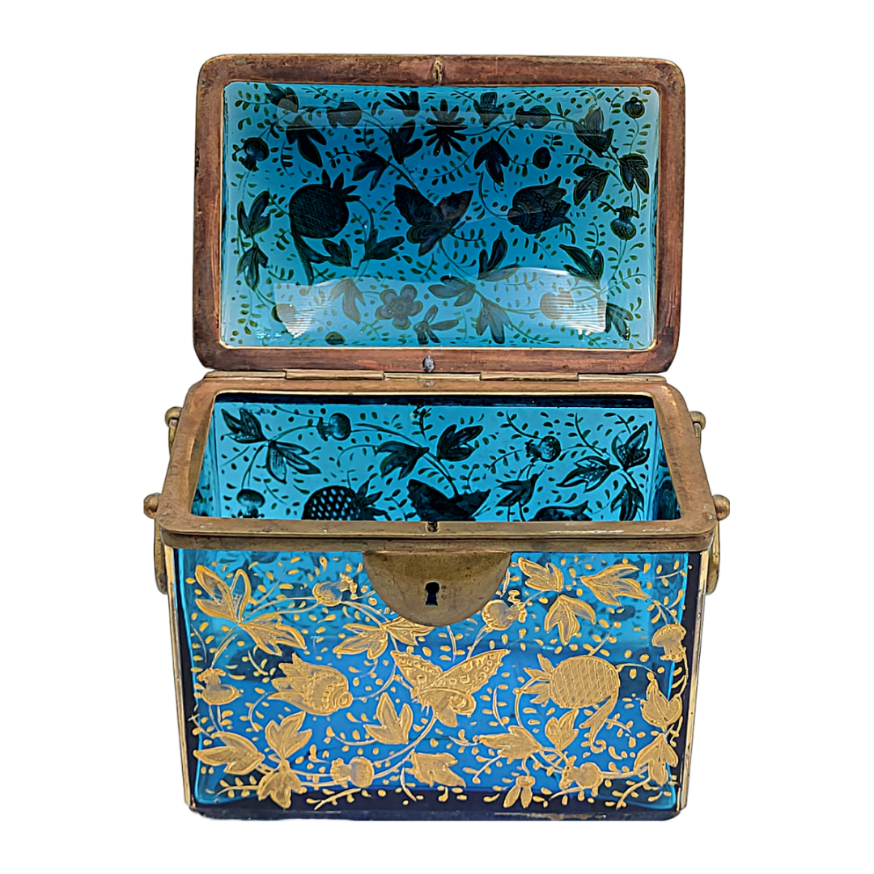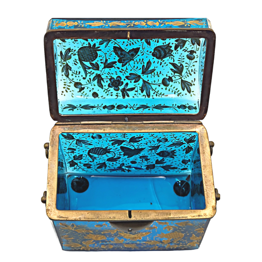 Antique Bohemian Moser Enameled Glass Jewelry Chest Box – 19th Century