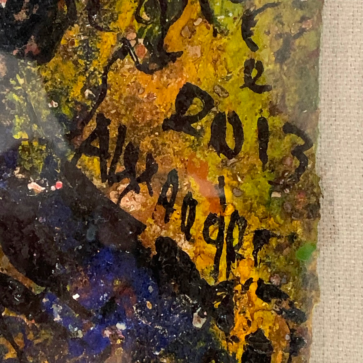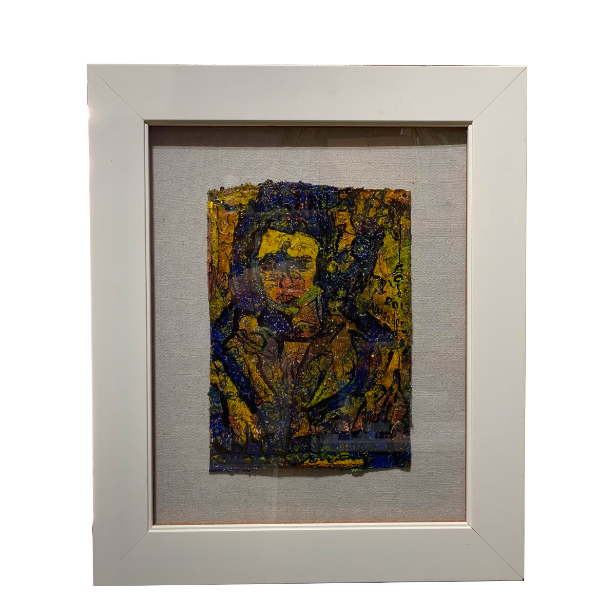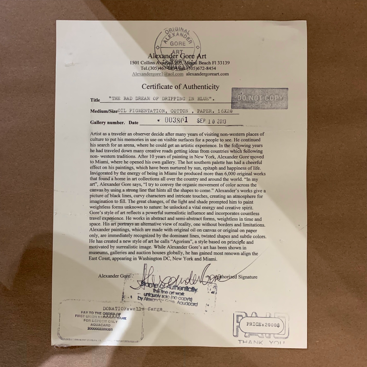 This is a 2013 artwork titled “The Bad Dream of Dripping in Blue” and is an semi-abstract painting by Alexander Gore, it measures approximately 25″(h) x 19″(w) framed and is in good overall condition and ready to hang. It comes with a Certificate of Authenticity from the artists studio which is signed and dated by the artist.