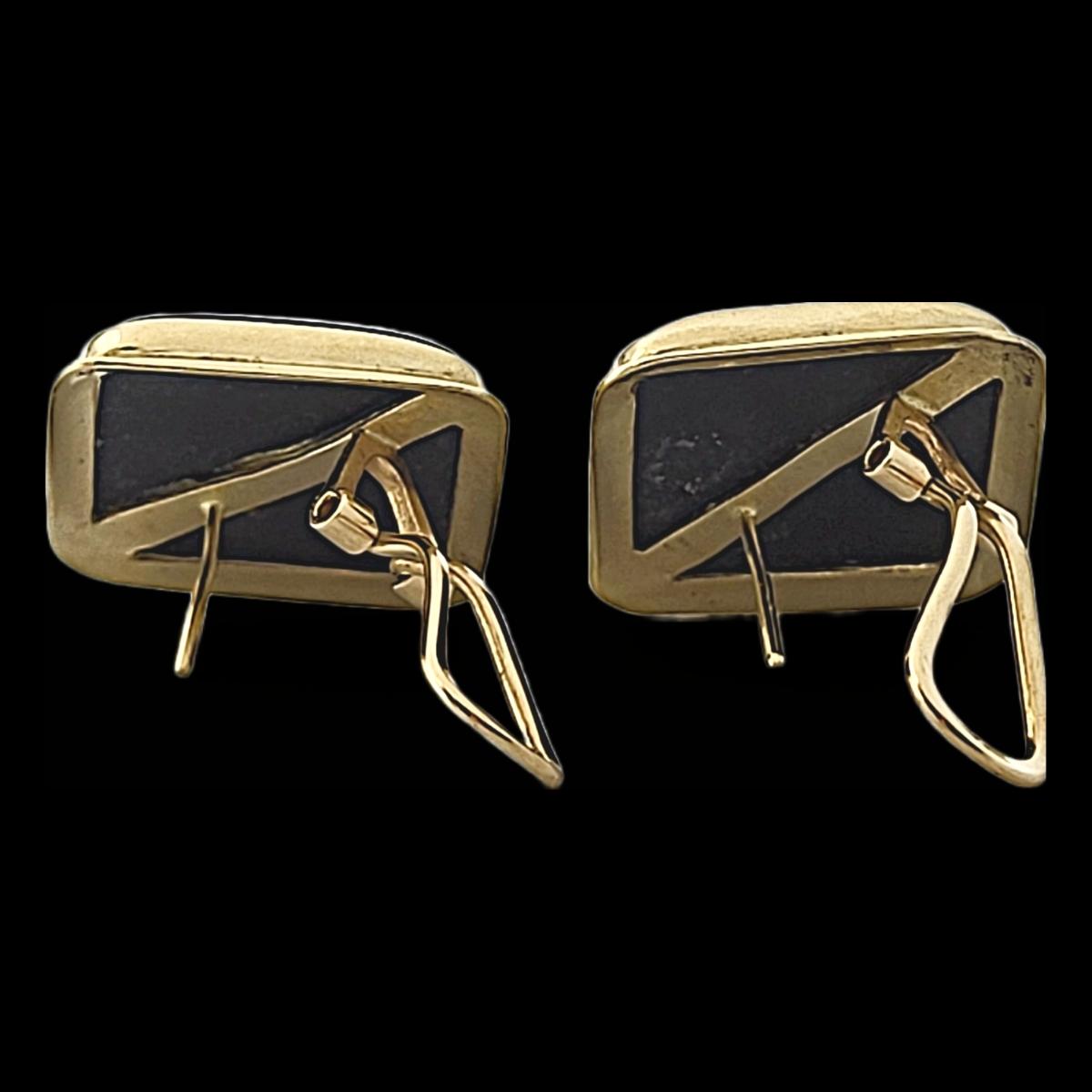 Vintage 14k Gold Square Faceted Black Onyx Earrings