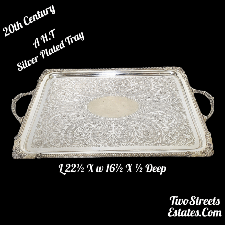 Vintage 20Th Century English Silver Plated Tray (Stamped A H.T)