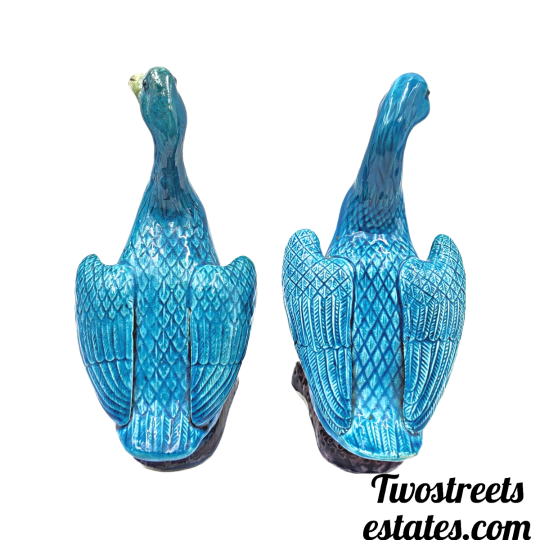 Description – Vintage Porcelain Turquoise Blue Chinese Duck / Goose Figurine. in great condition , handmade, (Set of two)